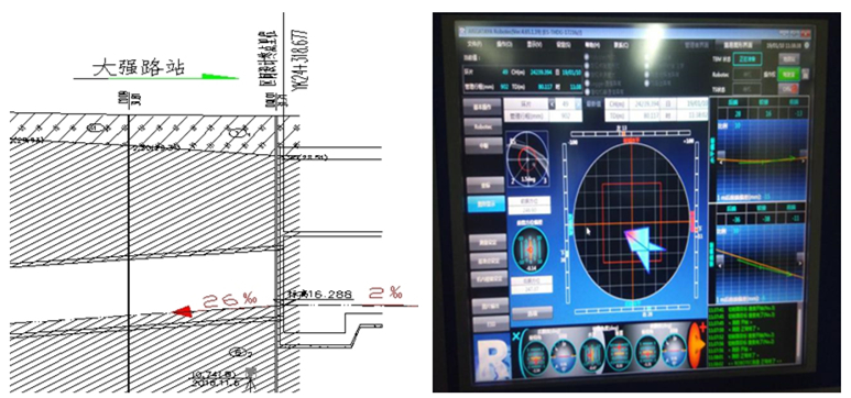 嚴控盾構始發姿態。盾構始發姿態決定了后續施工成敗,是盾構施工重中之重。考慮到盾構機自身重心靠前,始發掘進時易產生向下的“磕頭”現象,項目部將盾構始發軸線比設計軸線抬高20mm。此外,因車站底板自西向東為2‰縱坡,盾構進洞為26‰下坡。按照一般狀況抬高始發軸線易導致侵限。項目查找合肥市軌道交通前期其他盾構隧道施工的經驗,結合大強路站地質情況,調整盾構始發軸線,將盾構始發軸線抬高改為5‰下坡,有效避免了盾構管片侵限。
