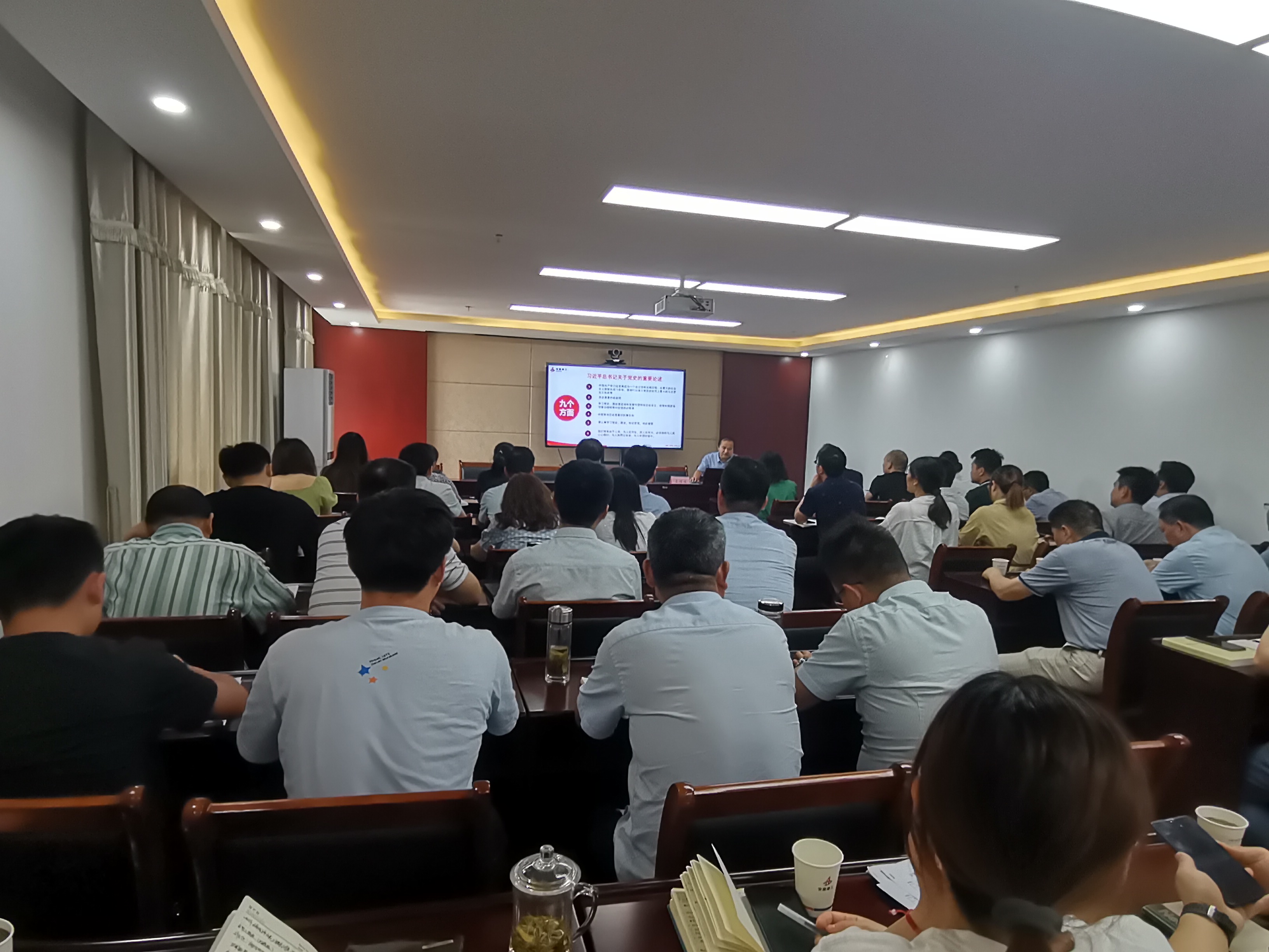 按照公司黨委黨史專題宣講工作相關(guān)要求,為慶祝中國共產(chǎn)黨成立100周年,深入學(xué)習(xí)貫徹習(xí)近平新時(shí)代中國特色社會(huì)主義思想,推動(dòng)黨史學(xué)習(xí)教育工作扎實(shí)開展,廣泛營造“學(xué)黨史、悟思想、辦實(shí)事、開新局”的濃厚氛圍。6月8日下午,公司財(cái)務(wù)總監(jiān)王繼成為三公司、八公司、裝飾公司專題宣講黨史。三家單位領(lǐng)導(dǎo)班子、黨員、科室負(fù)責(zé)人、項(xiàng)目負(fù)責(zé)、技術(shù)負(fù)責(zé)共50余人參加。