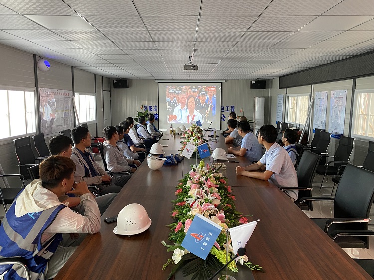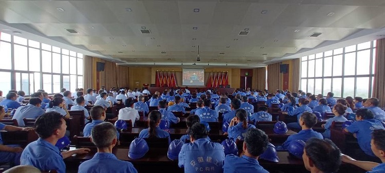 在公司重點項目——六安一中項目現場,來自所屬四公司、安裝公司、裝飾公司的30余名管理人員集中收看大會直播
