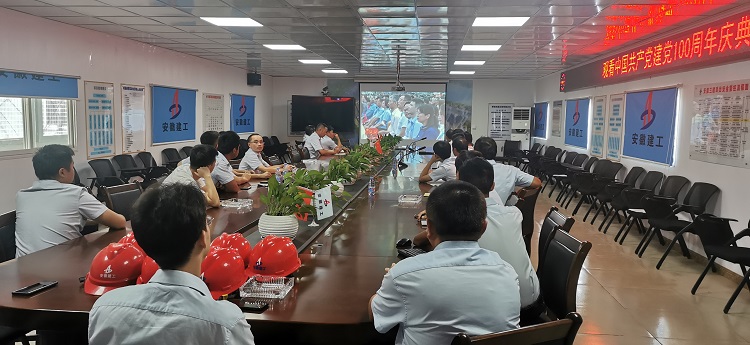 7月1日早上7:50分,安徽三建公司五樓大會議室早已座無虛席,左登宏、何洪春等公司領導及各部門職工近200人早早來到會議室,等候集中收看慶祝中國共產黨成立100周年大會。