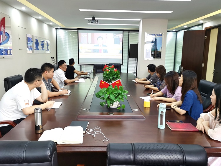 新鑫檢測公司組織職工在會議室集體收看大會直播