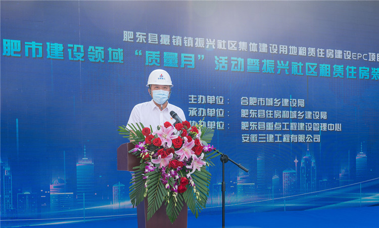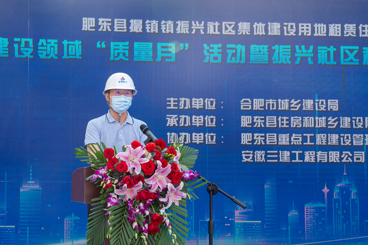 為不斷提高裝配式建筑制造建造水平,大力推進質量強市建設,9月18日上午,合肥市建設領域2021年“質量月”活動暨振興社區租賃住房裝配式建筑現場觀摩會在安徽三建肥東振興EPC項目舉辦。合肥市城鄉建設局總工程師王榮村,肥東縣委常委、副縣長王偉程、安徽三建公司黨委副書記、總經理何洪春等出席會議。會議由合肥市綠節中心主任杜德平主持。