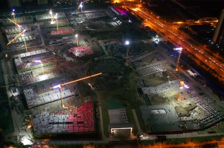 9月20日晚,合肥一中東校區項目燈火通明,項目110多名管理人員,近1200名工人“挑燈夜戰”,搶抓工期進度