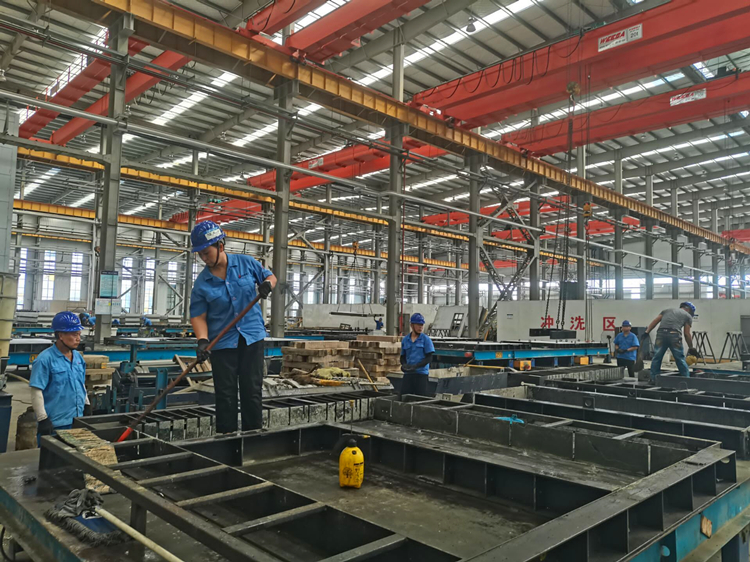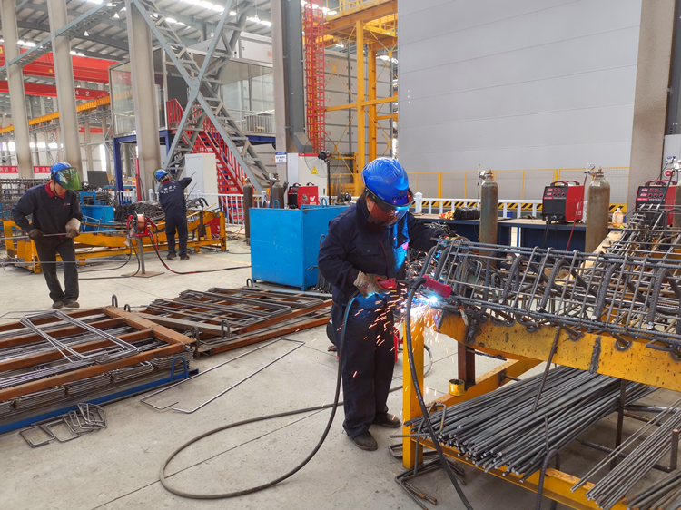 假日期間,建筑工業公司生產車間有序生產,保證預制構件供應
