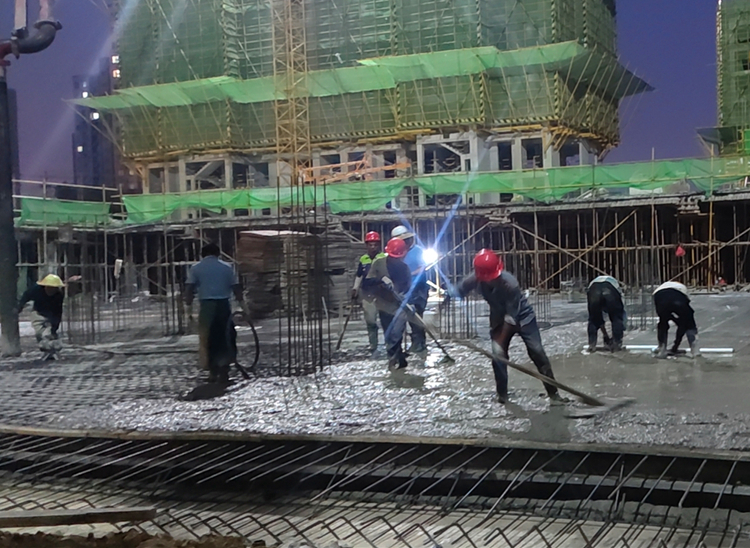 廈門公司假日期間汕頭悅江府北區項目11號樓進行地下室頂板趕工