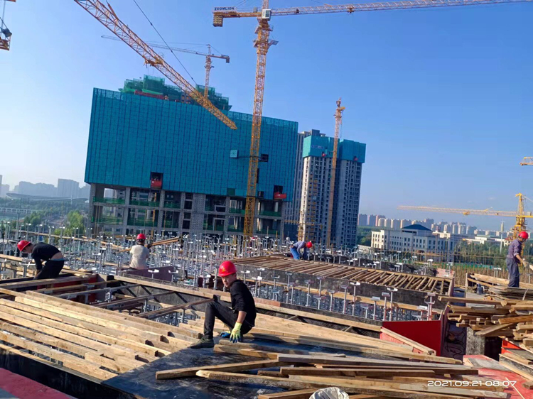 上海公司淄博明發世貿中心超高層項假日期間繼續進行3號樓商業樓頂板鋪設工作