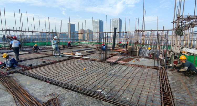 一公司三亞TY04-01-02地塊項(xiàng)目國慶期間,項(xiàng)目現(xiàn)場共有500余人在8個(gè)作業(yè)面同時(shí)開展木工、瓦工、鋼筋捆扎作業(yè),7天累計(jì)完成產(chǎn)值約500萬元。