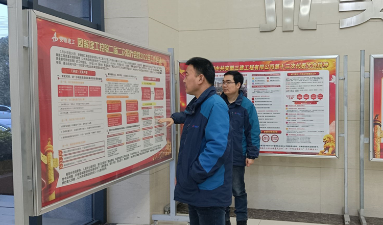 日前,建工控股二屆二次職代會暨2022年工作會順利召開。安徽三建公司積極行動,通過懸掛職代會精神掛圖、召開學習會、工作部署會等方式,及時學習宣傳貫徹會議精神,在公司上下掀起學習宣貫熱潮,讓廣大員工全面、準確地了解集團2022年工作思路、奮斗目標及總體工作部署,統(tǒng)一思想、提振信心,激勵廣大干部員工踔厲奮發(fā)、篤行不怠,埋頭苦干、勇毅前行,為奮力譜寫安徽建工高質量發(fā)展新篇章,建設現(xiàn)代化美好安徽作出新的更大貢獻,以優(yōu)異成績迎接黨的二十大勝利召開。
