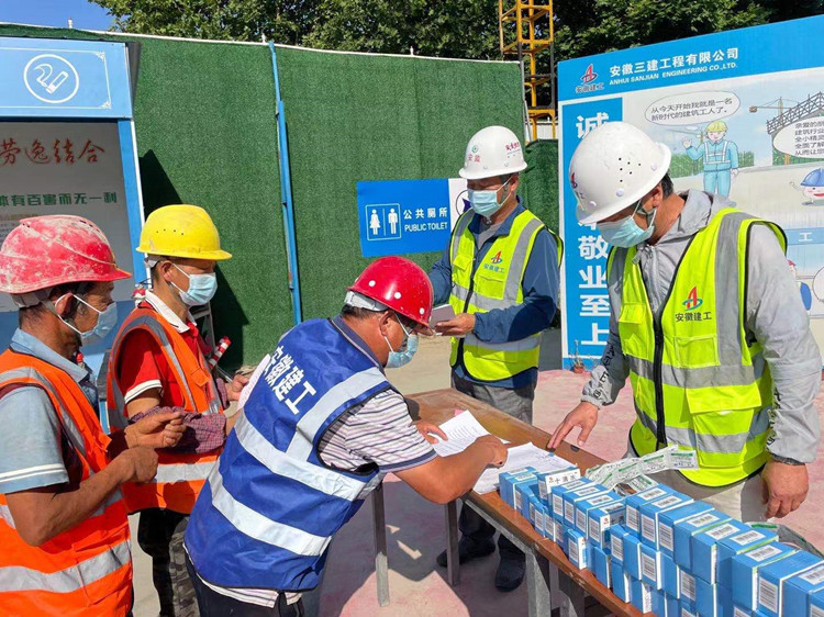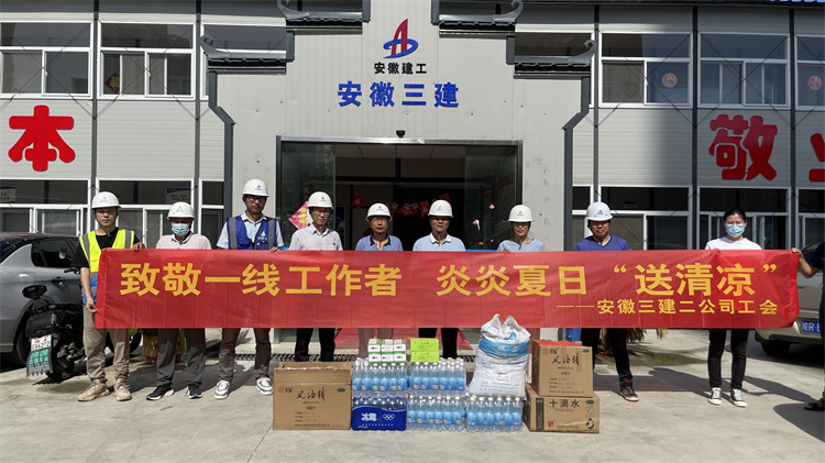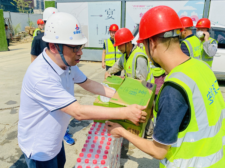 7月12日和7月13日上午,二公司副經理侯強、李國先后赴合肥市第一中學校園品質提升工程、新建藝術禮堂項目施工總承包工程(含安裝公司、裝飾公司職工)、合巢產業新城郭塘新村、映湖公租房項目施工二標段開展夏日“送清涼”活動,為70多名管理人員、400多名一線工人發放防暑降溫物品。