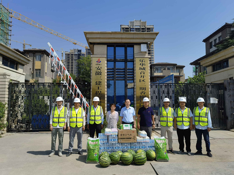 7月13日上午,四公司領導班子及質量、安全科科長到蕪湖星河萬里項目開展了“送清涼”慰問活動。為項目送來了礦泉水、綠豆、西瓜、白糖、毛巾、花露水、人丹、藿香正氣水等防暑降溫物品。