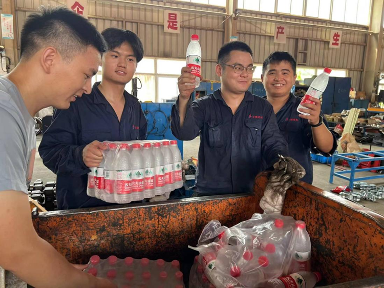建機公司由工會牽頭,制定了機關“送清涼”至一線排班表,由機關各部門人員分批次為一線員工“送清涼”,發放礦泉水等防暑降溫用品,將“送清涼”活動落到實處。其中重點開展為電焊工、室外發貨人員、室外培訓人員等崗位職工送去清涼。