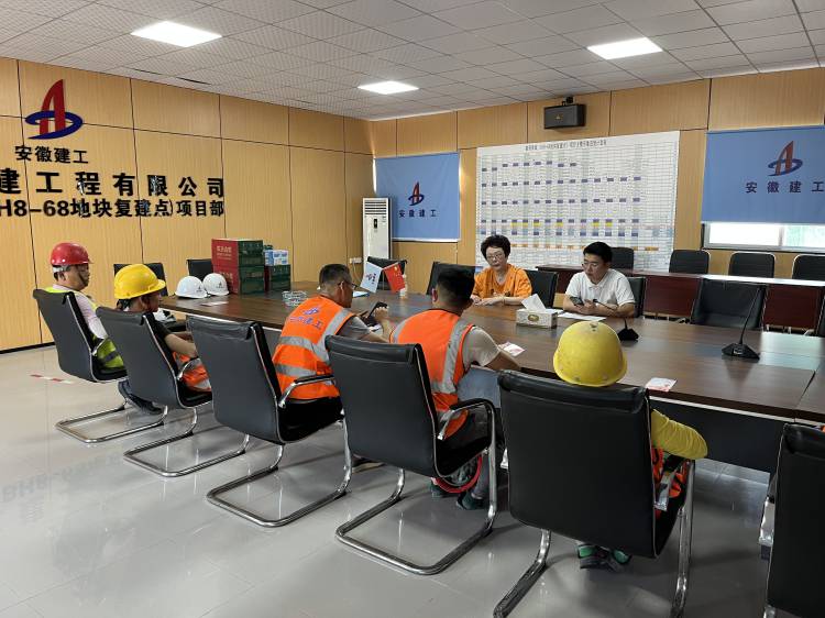 7月18日,防水公司安全科長到六安舒城一中項目開展“夏送清涼”活動。 在會議室中,防水公司安全科長為奮戰在一線的施工人員發放礦泉水、藿香正氣液、人丹等防暑降溫物品,并叮囑他們在現場作業過程中要時刻關注身體狀況,做到不飲酒作業,不帶病作業,根據實際情況安排作業時間,避開高溫時段,同時強調不能因為天熱而置安全于不顧,要克服酷暑高溫,更要嚴格規范穿戴安全帽、安全繩,確保施工安全。