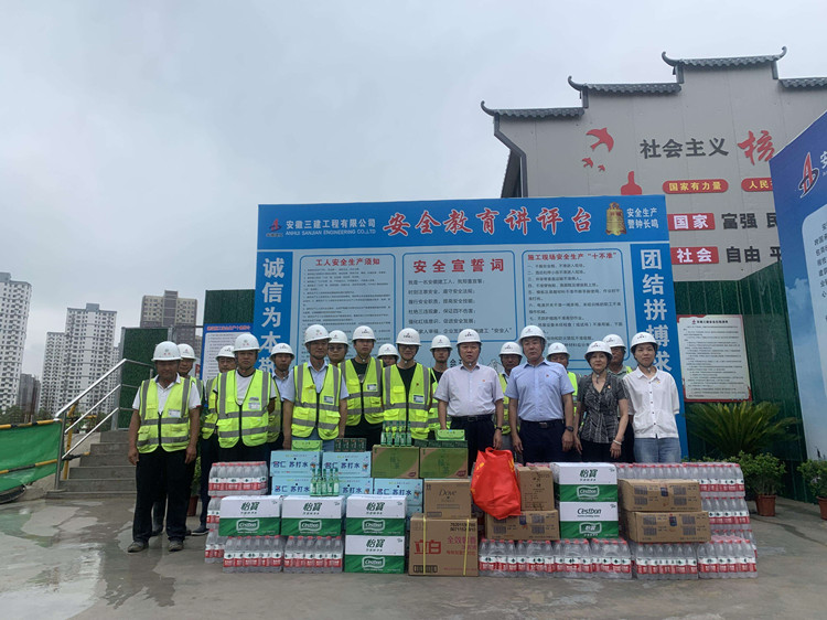 7月以來,伏天酷暑,高溫“炙烤”,安徽省持續高溫,多地氣溫接近40℃,給一線建設者們帶來嚴峻“烤”驗。為切實做好夏季安全生產和防暑降溫工作,落實“我為群眾辦實事”工作部署,安徽三建適時開展“送清涼”活動,為奮戰在現場一線的項目管理者們送去關心愛護,保障一線員工的身體健康,助力企業安全生產。