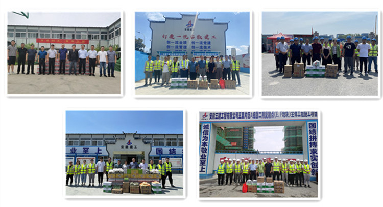公司黨委書記、董事長何洪春,黨委副書記、總經理徐少華等班子成員分別帶隊,領導班子成員先后前往濱湖科學城項目、天長恒大湖山半島項目、安徽省公共衛生臨床中心項目、少荃體育中心項目、葉集明發城市廣場項目、源長花園項目、合肥一中東校區項目、嚴店鄉引江濟淮二期項目等項目一線、工廠車間,親切慰問堅守崗位、奮戰在高溫一線的干部職工,為他們送上防暑降溫物品,感謝他們為公司發展做出的貢獻,同時叮囑他們在高溫天氣要合理安排作息時間,注意勞逸結合,確保施工安全。