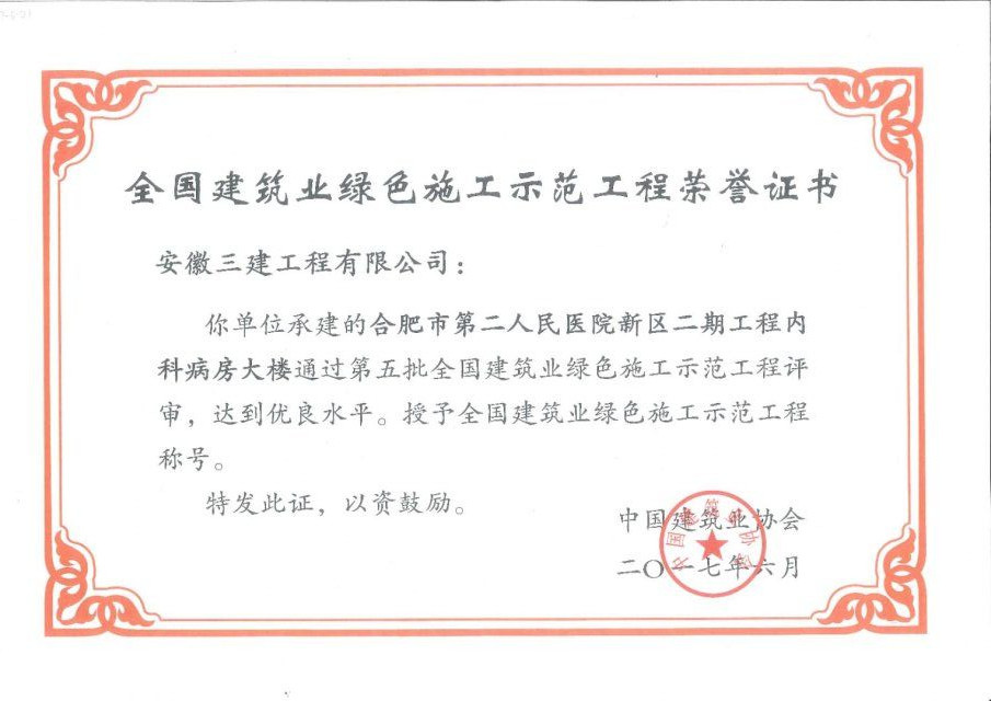 “全國建筑業(yè)綠色施工示范工程”稱號