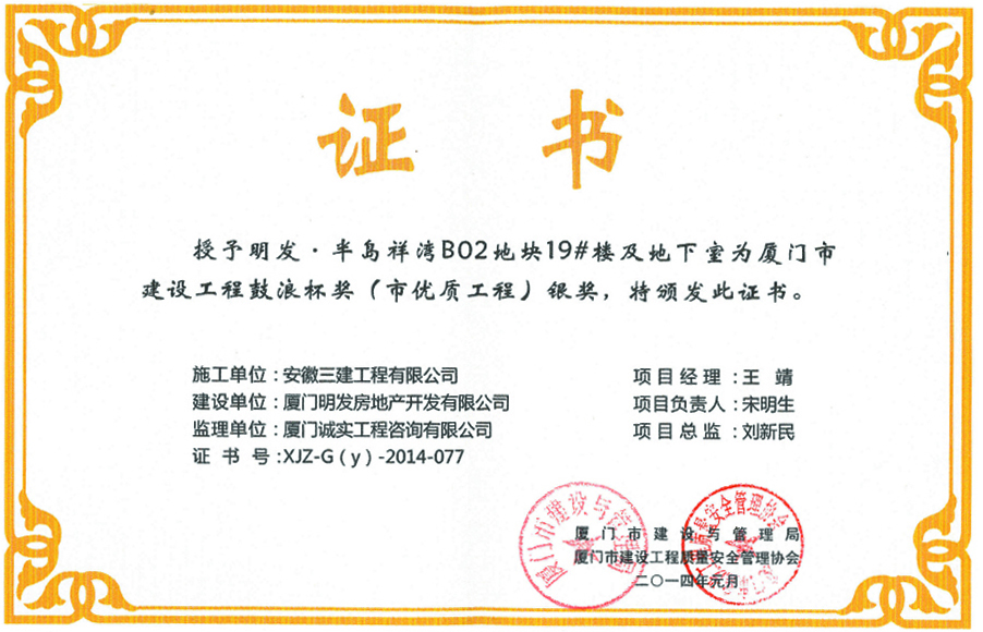 安徽三建工程有限公司廈門分公司成立于1984年。分公司依托公司建筑工程施工總承包特級資質、工程設計建筑行業甲級資質等有利資源,立足廈門經濟特區,負責開拓公司在福建及周邊省市范圍內的建筑市場,可承接各種工業與民用建筑、工業設備和水電安裝、公路工程、市政工程、消防工程、鋼結構工程、幕墻工程、室內裝修、鋁合金門窗安裝等工程。