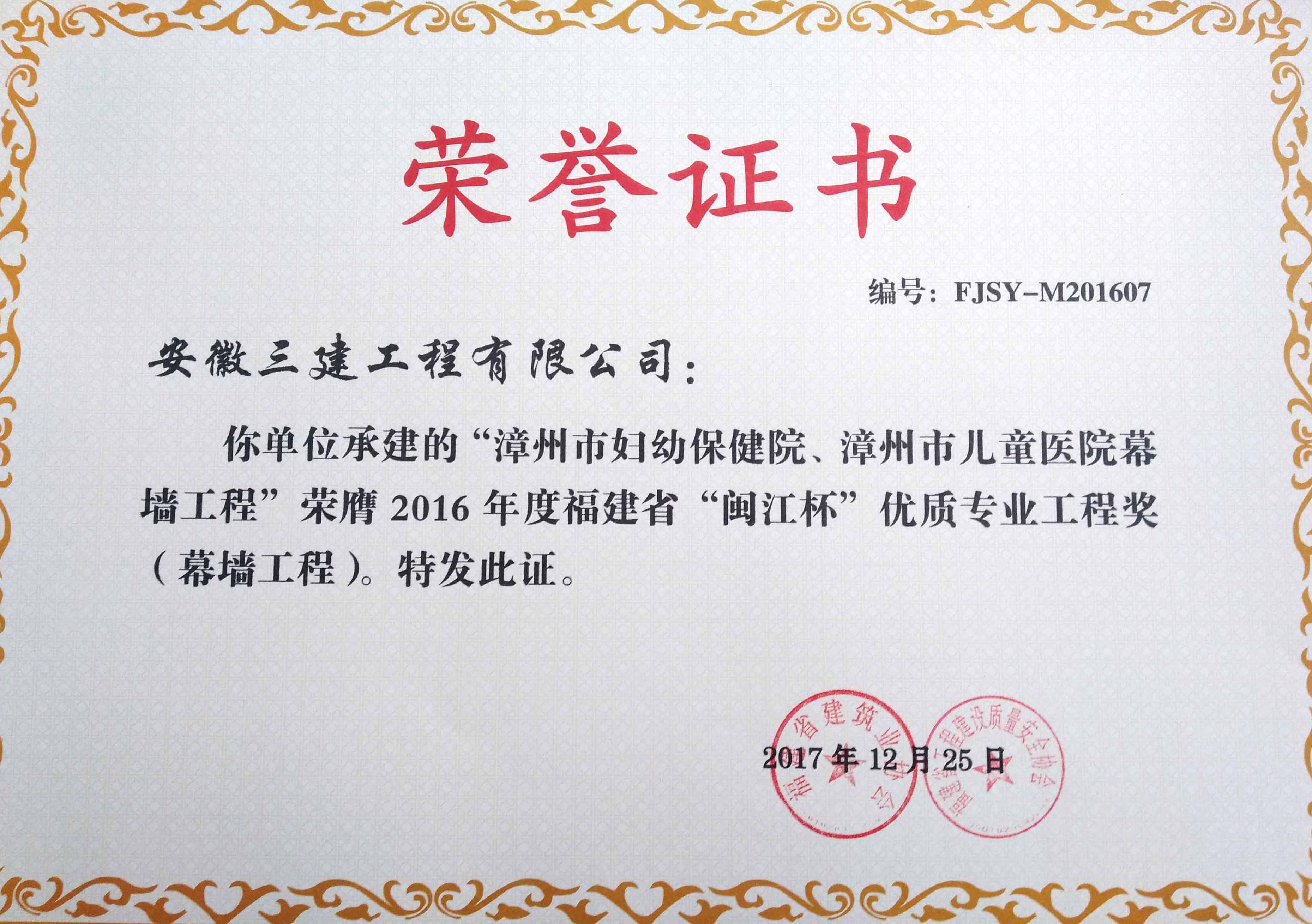 分公司成立30多年來,在公司戰略思想的指導下,在省市各級領導及社會各界的關心和支持下得到了較快的發展,取得了驕人的成績,先后榮獲省(部)、市級各類獎項70余次,連續多年被福建省及廈門市相關行業主管部門授予“重合同,守信用”單位、“AAA級信譽企業”、“經辦系統雙文明單位”、“廈門市先進文明單位”、“超500萬元納稅大戶”等多項稱號。近年來,分公司先后獲得魯班獎1項、建設部“施工質量金牌獎”1項、省級標準化工地18項、福建省“閩江杯”、福州“榕城杯”等多項榮譽。