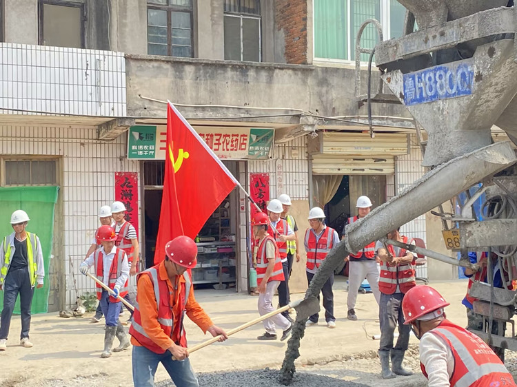 三十崗鄉(xiāng)三豐路集鎮(zhèn)段全長(zhǎng)240m,原為4米寬村村通水泥路,因年久失修,路面有局部坑洼,給當(dāng)?shù)氐拇迕裆畛鲂袔?lái)一定的不便,此條道路也是項(xiàng)目土方外運(yùn)的必經(jīng)之路。為感謝當(dāng)?shù)卮迕駥?duì)項(xiàng)目建設(shè)的支持,今年6月,八公司清瀾苑項(xiàng)目臨時(shí)黨支部主動(dòng)承擔(dān)起該條道路的修復(fù)義務(wù),并根據(jù)現(xiàn)場(chǎng)實(shí)際情況制定了針對(duì)性強(qiáng)、可實(shí)施性高的道路修復(fù)施工方案。在修復(fù)過程中,項(xiàng)目黨員干部和多名經(jīng)驗(yàn)豐富的一線職工頂住炎熱、突擊搶修,為道路品質(zhì)提供了有力保障。村民們?yōu)楦兄x搶修組,紛紛拿來(lái)礦泉水、西瓜等。