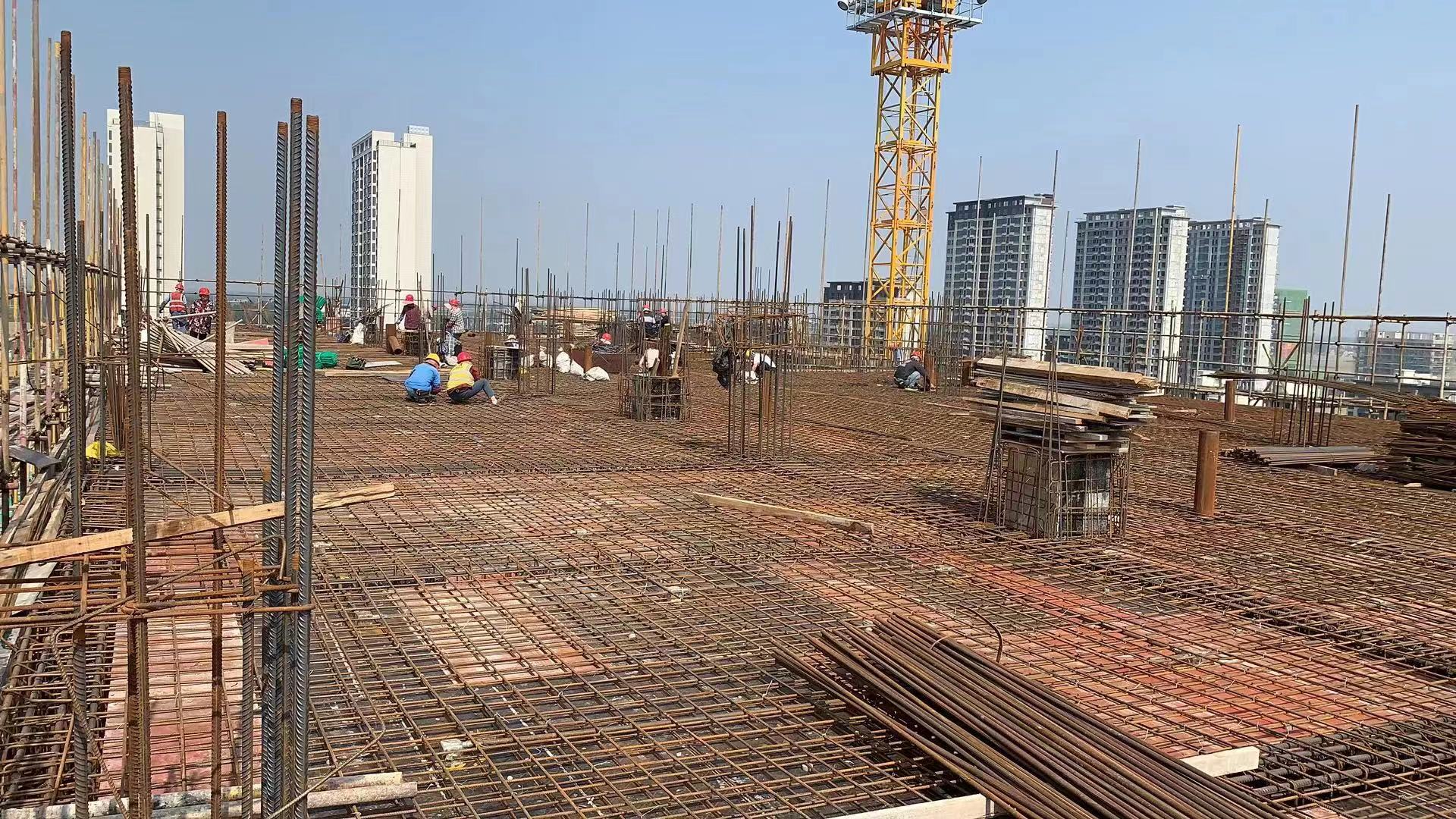 圖為建工三建集團蕭縣鳳城醫院項目綁扎鋼筋施工現場