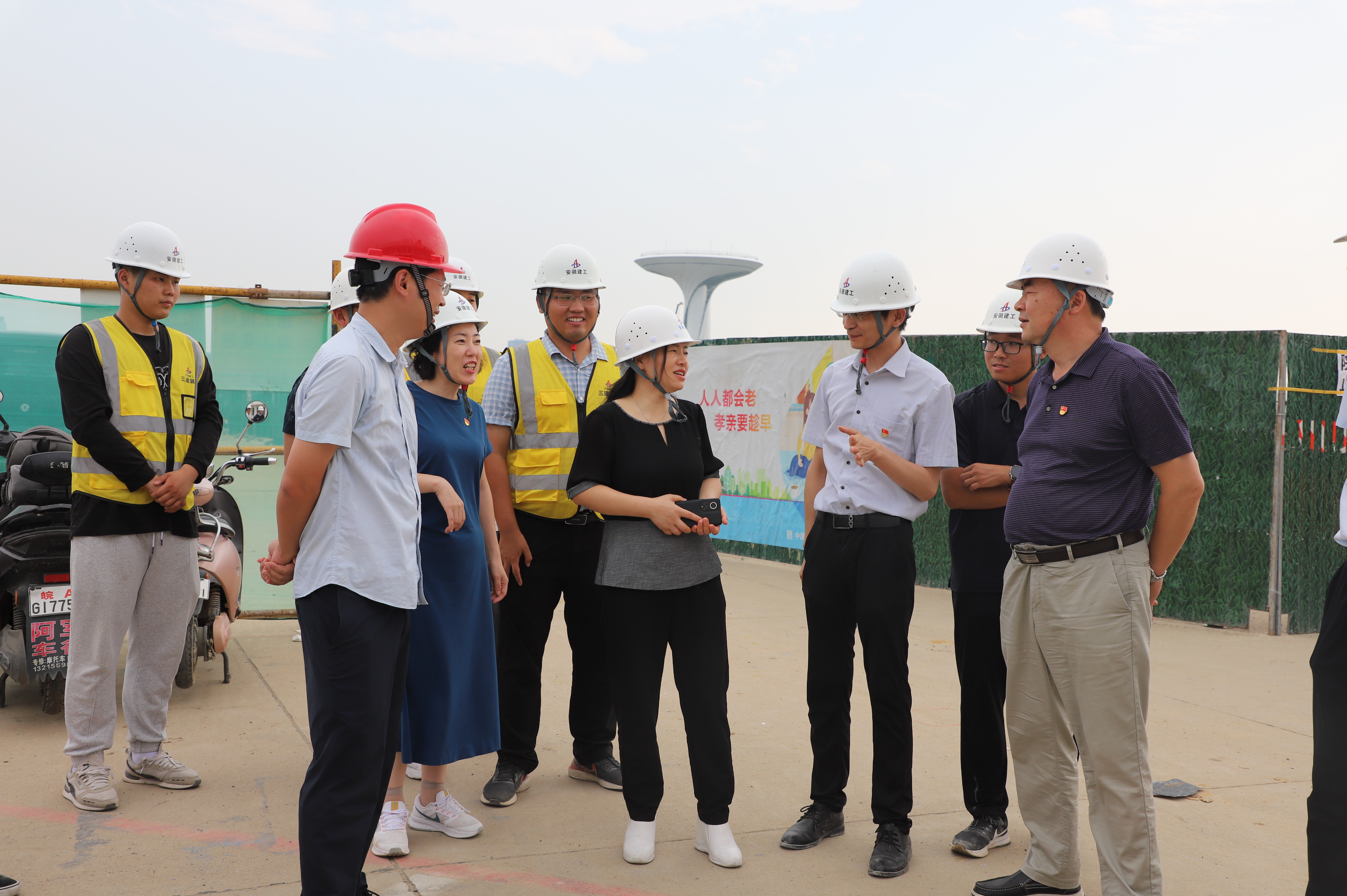 8月15日下午,安徽建工三建集團有限公司黨委副書記、工會主席黃麗春,黨委委員、紀委書記李躍進一行赴園博園項目調研指導。