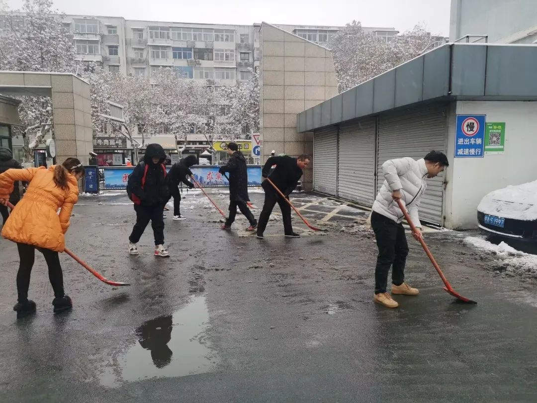 水利交通公司和工程建設研究院兩支部組織黨員及入黨積極分子、團員青年近20多人積極投入到熱火朝天的掃雪工作中,給辦公區周邊的駿豪華庭小區居民和駿豪商務中心寫字樓辦公人員在寒冬開辟了一條安全道路。