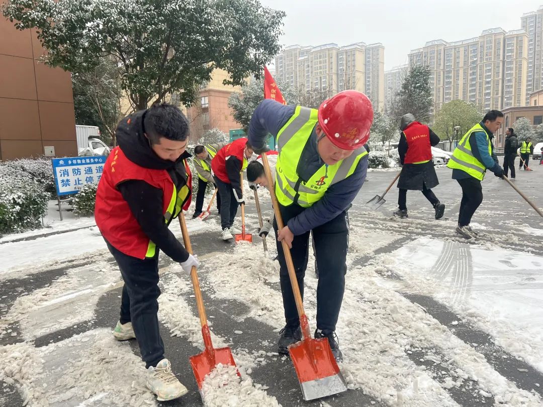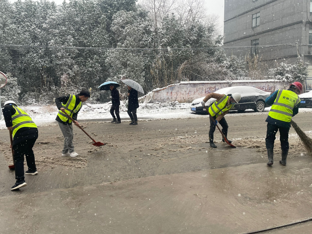廬江同大鎮集鎮安置點項目職工組成黨員先鋒隊和青年突擊隊,對項目周邊區域及道路積雪進行清掃,及時消除安全隱患,為職工出行安全做出了積極貢獻。