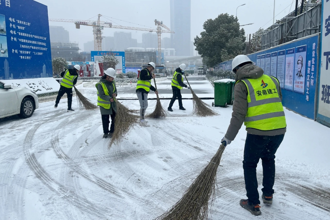 安徽(合肥)創新法務區項目組織全體管理人員清掃項目出入口及項目內部道路上的積雪,為項目施工安全提供堅強保障。