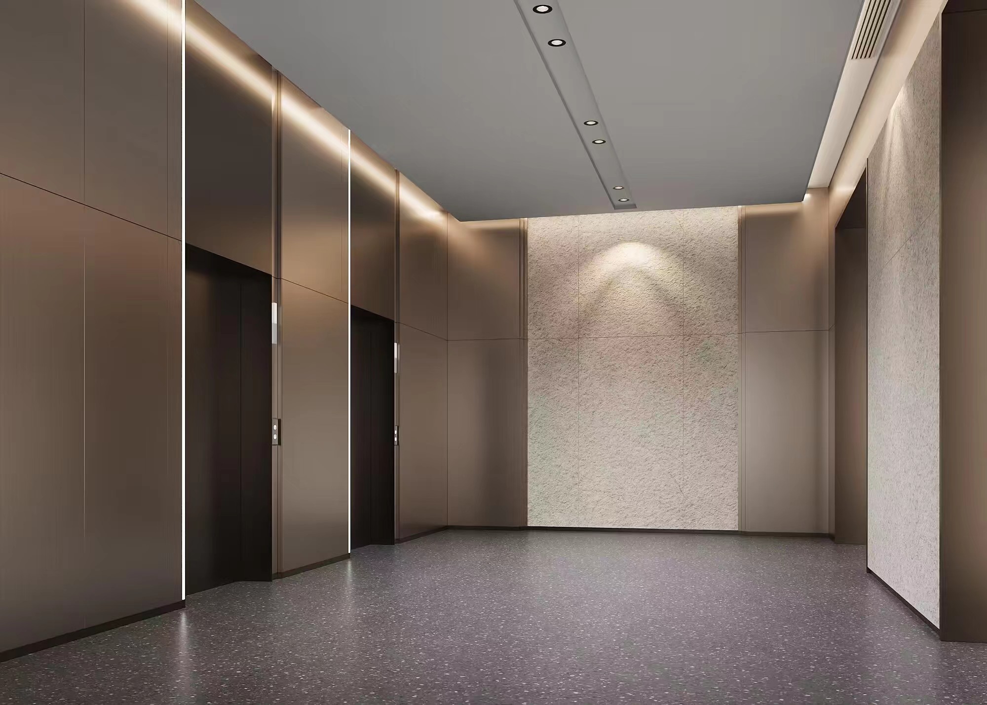 3層樣板區:輕鋼龍骨隔墻骨架已完成,隔墻封板已完成,地坪澆筑已完成,頂面龍骨施工已完成,封板施工已完成,燈膜安裝已完成,頂面消防管道已完成。共完成1至3層總工程量的25%。