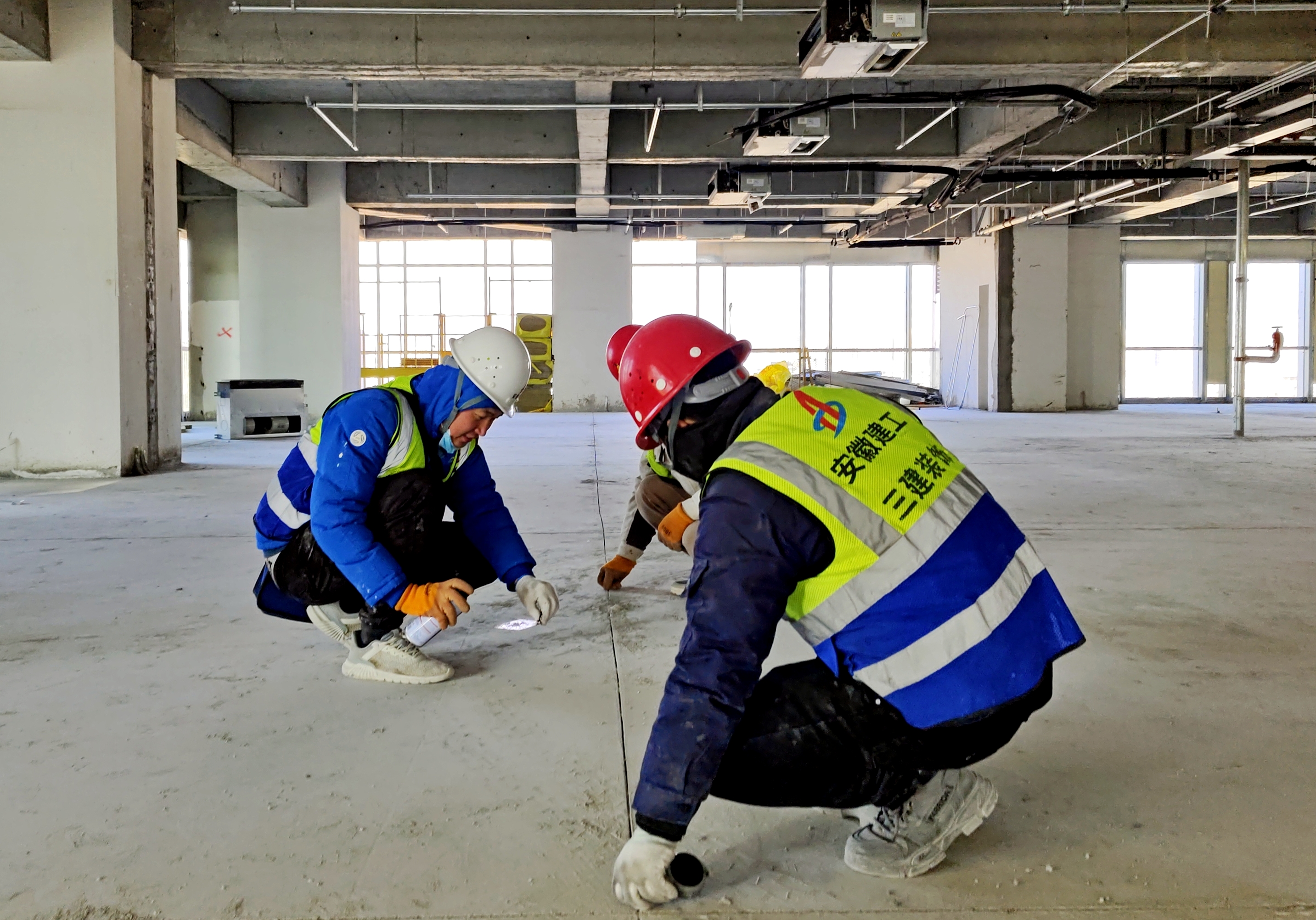重點關注幕墻、地坪、濕作業等易受低溫影響的環節,通過室內加溫和材料預熱等手段,搶抓晴好天氣進行作業。