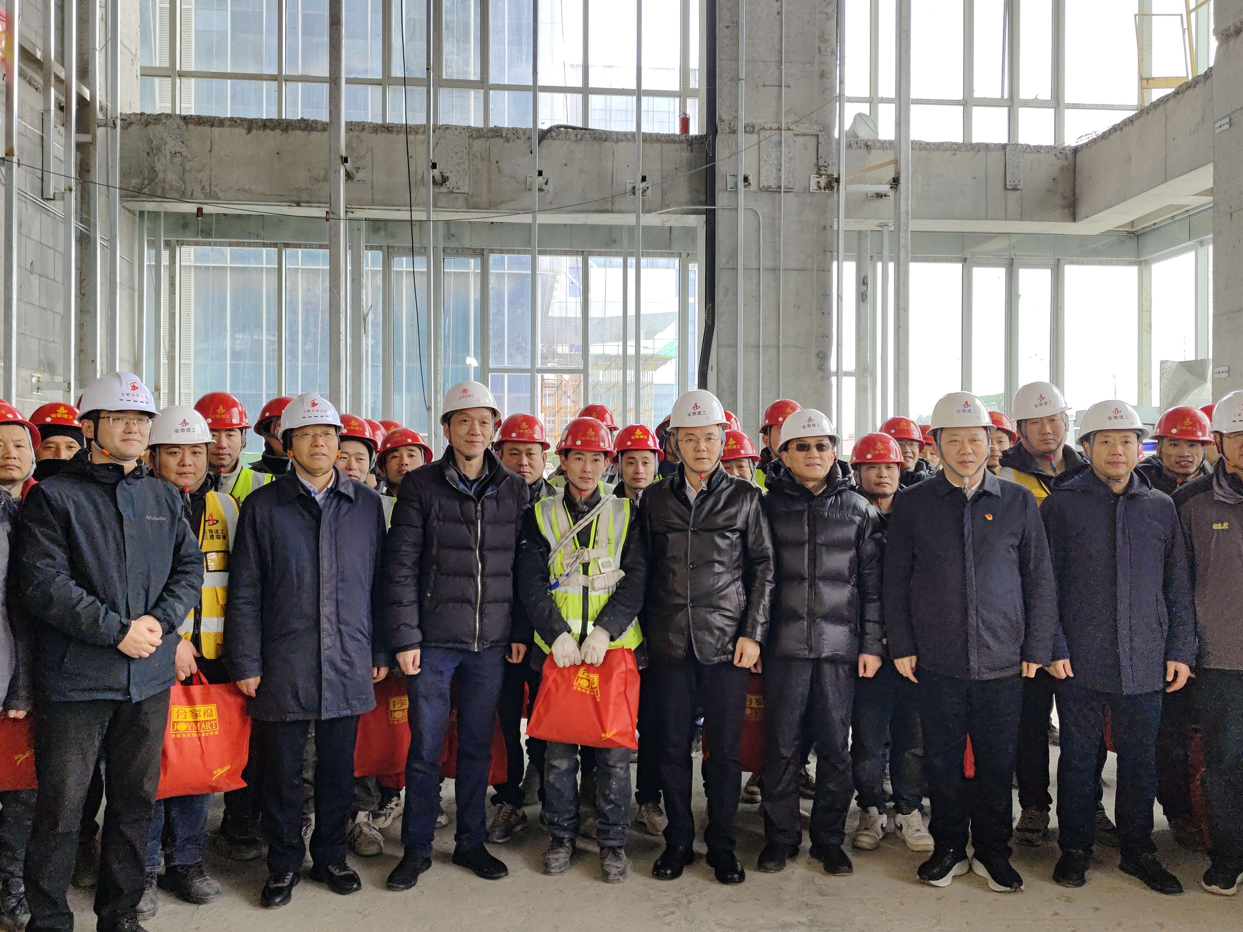 隨后,劉衛寶一行為項目現場的施工人員送去了慰問品,向他們致以新春的祝福,叮囑大家一定要注意身體,在施工的過程中做好安全防護和防寒保暖措施。
