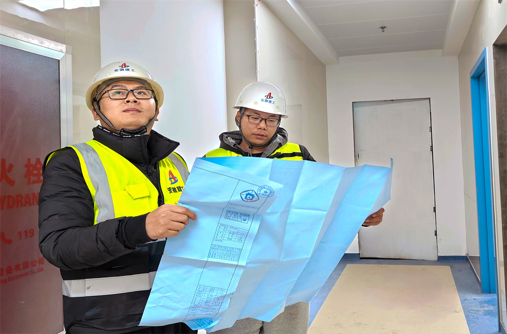 “春節(jié)我在崗,嚴(yán)控品質(zhì)、嚴(yán)把安全,以實(shí)際行動踐行工匠精神。”安裝項(xiàng)目經(jīng)理劉偉、生產(chǎn)經(jīng)理?xiàng)顫谶M(jìn)行樣板間問題的探討與整改工作。