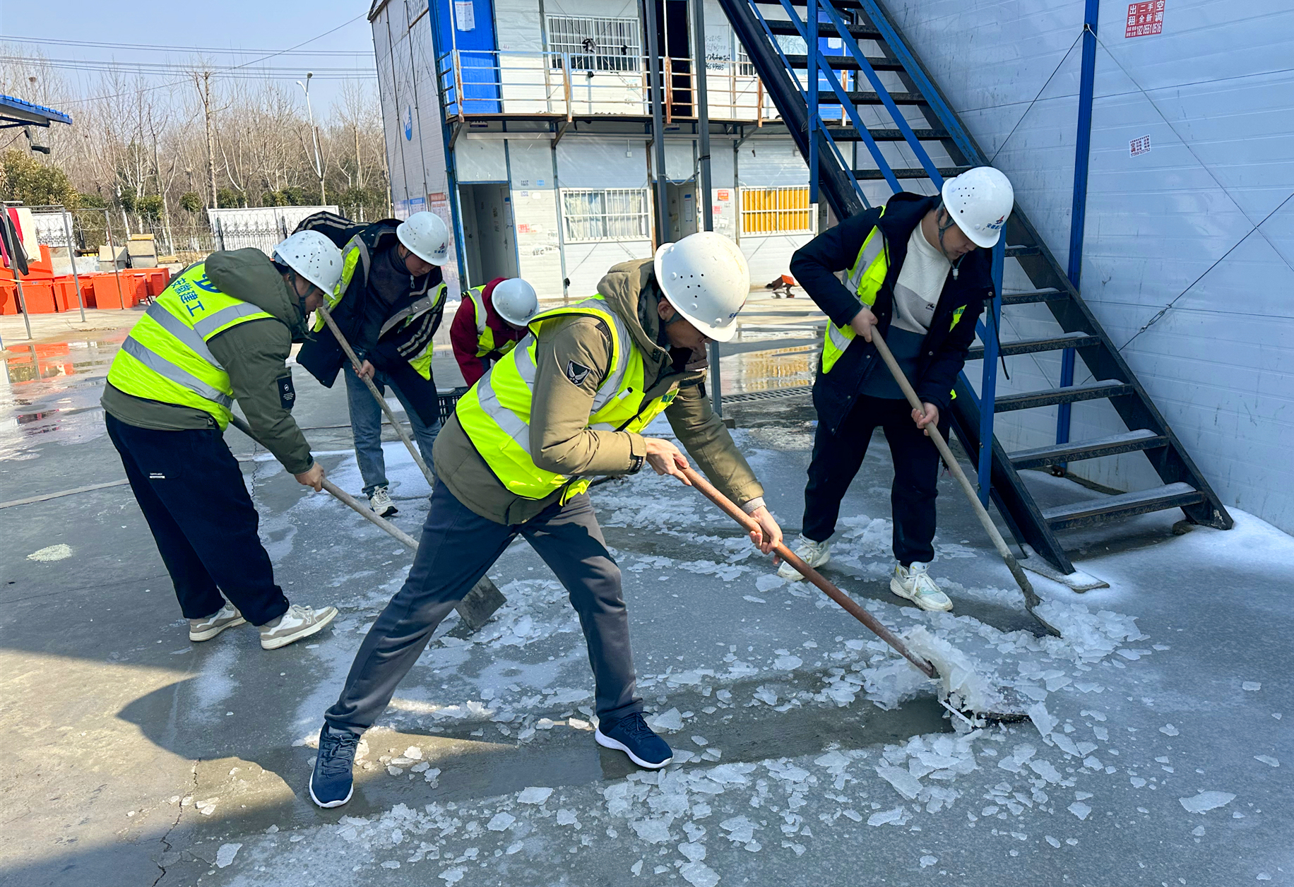 2月25日,安徽大學綠色產業創新基地項目管理人員及時清掃施工現場及辦公區積雪,破除路面冰塊,避免因路面濕滑發生跌倒、扭傷等安全事故,全力保障施工安全和工程進度。