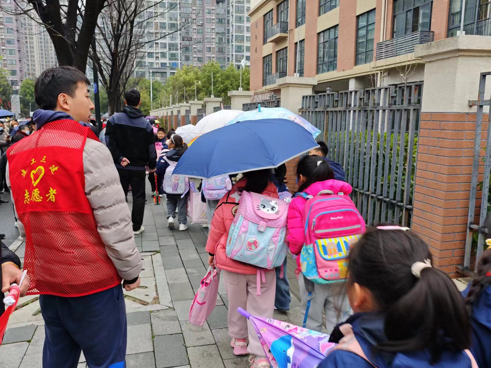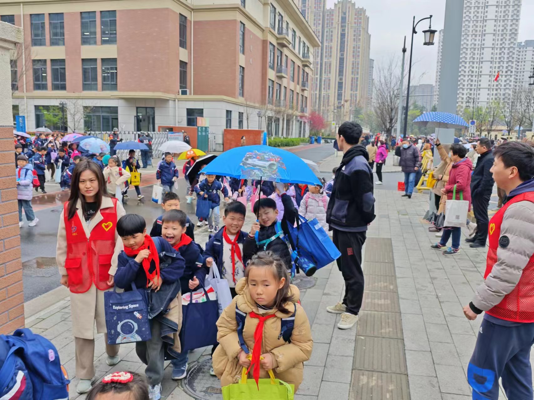 3月25日,濱湖科學城項目組織管理人員在項目附近合肥師范附小放學路段進行護崗,維持周邊交通秩序,為學生營造良好的交通環境。