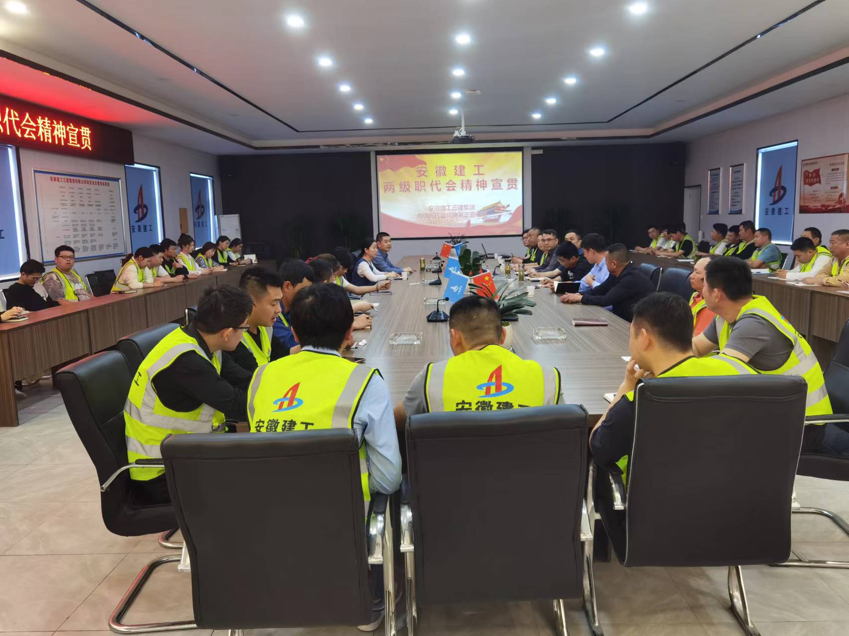 4月11日下午,公司第一宣講組深入合肥市瑤海區YH202307地塊土建及水電安裝總承包項目開展兩級職代會精神宣貫活動,八分公司、九分公司一線項目管理人員近40人參加。宣講會上,宣講團成員王忠首先傳達集團及公司職代會精神,并對公司2023年取得的成績以及2024年工作總體部署進行了解讀,還共同傳達學習了有關加強執行力建設的相關工作要求。隨后,宣講團成員萬彬彬對十佳項目經理張自強、張羿的事跡進行了宣講,就職代會精神現場開展交流互動,現場氣氛活躍。