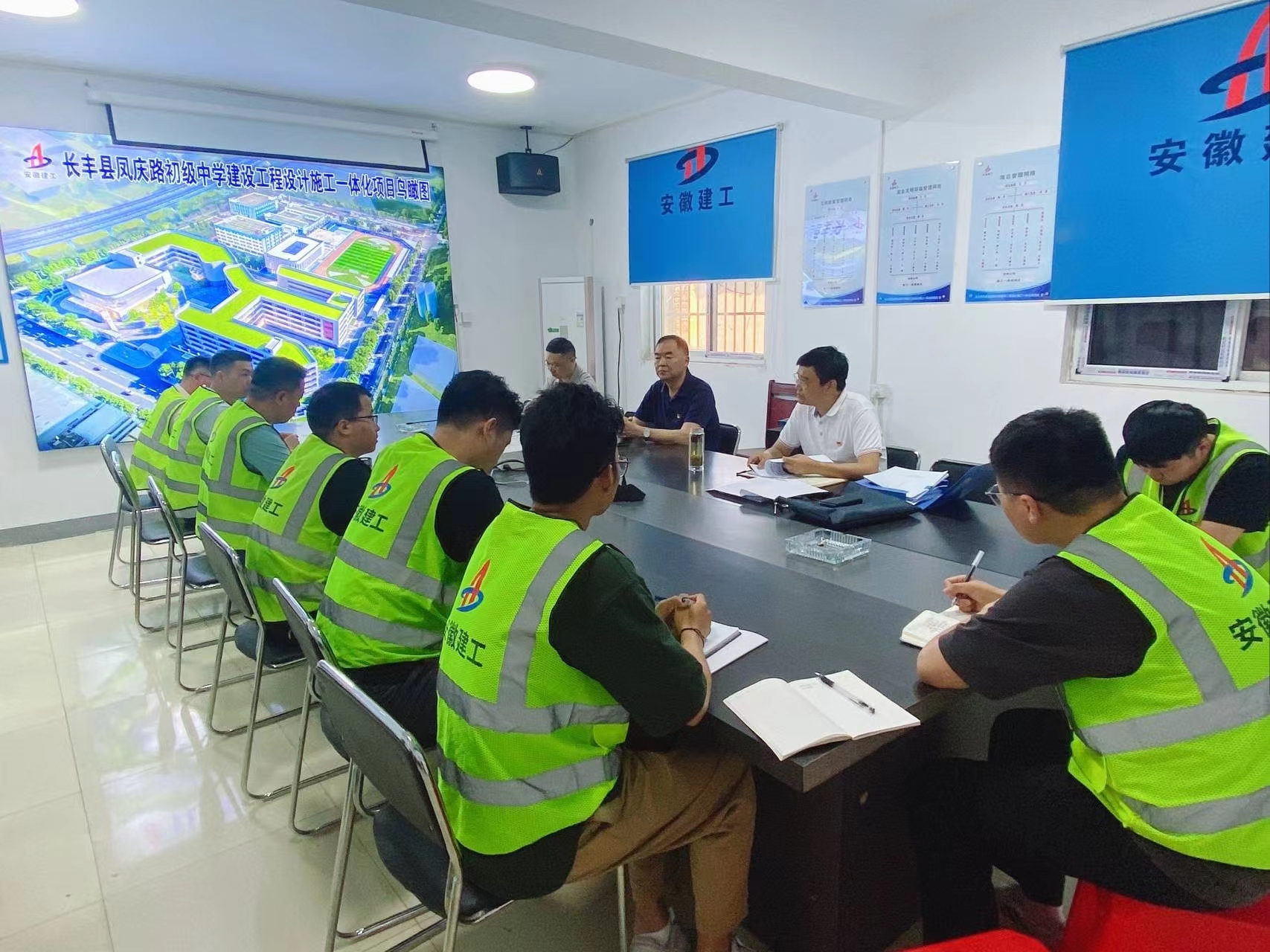 李躍進實地察看項目建設情況,詳細詢問了目前工程進展、質量管控、安全文明、黨紀學習教育等工作內容,并對目前項目建設工作給予充分肯定。他指出,黨紀學習教育要輻射到整個項目班子成員,做到全面學習,強化所有管理人員紀律意識,提升廉潔自律能力,自覺規范自身行為;鳳慶路中學項目作為長豐縣2024年度重點民生工程項目,要嚴抓安全工作、保證質量,強化項目管理,凝聚團隊力量,迎難而上,真抓實干,確保建設高品質工程;同時要關心員工日常生活情況,及時解決發生的困難,提升員工工作幸福感。