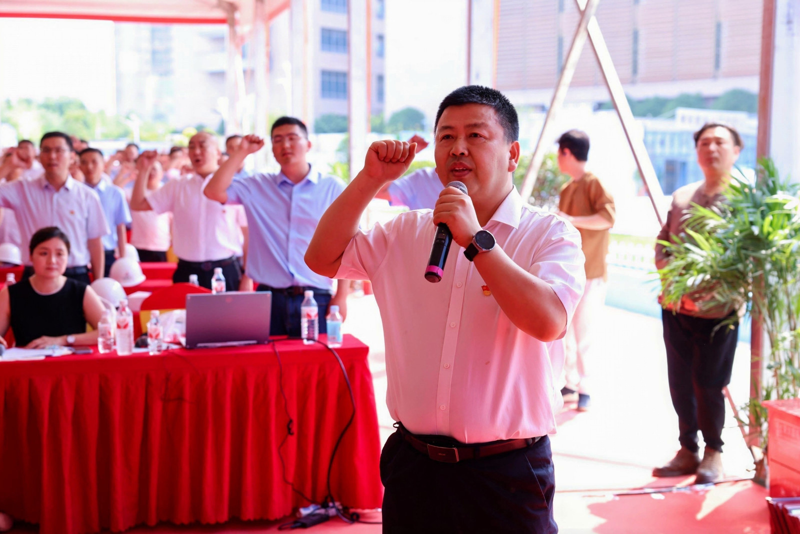 公司黨委書記、董事長何洪春宣布安徽建工三建集團2024年安全生產月啟動儀式暨第三屆安全質量比武大賽正式開始。公司黨委副書記、總經理谷建偉在致辭中指出,本次比武大賽是公司貫徹落實全國第23個“安全生產月”系列主題活動之一,舉辦此次技能競賽活動,旨在強化職工安全質量管理意識,提升職業技能水平,進一步鍛造企業品牌形象。他強調,企業品牌建設是安徽建工三建集團的靈魂和根本,也是永恒的追求,我們堅定提升項目品質,制定科學完善的考核體系和制度,始終堅持將安全質量管理作為企業管理的核心環節。公司黨委委員、副總經理王明禮帶領大家進行了安全宣誓。