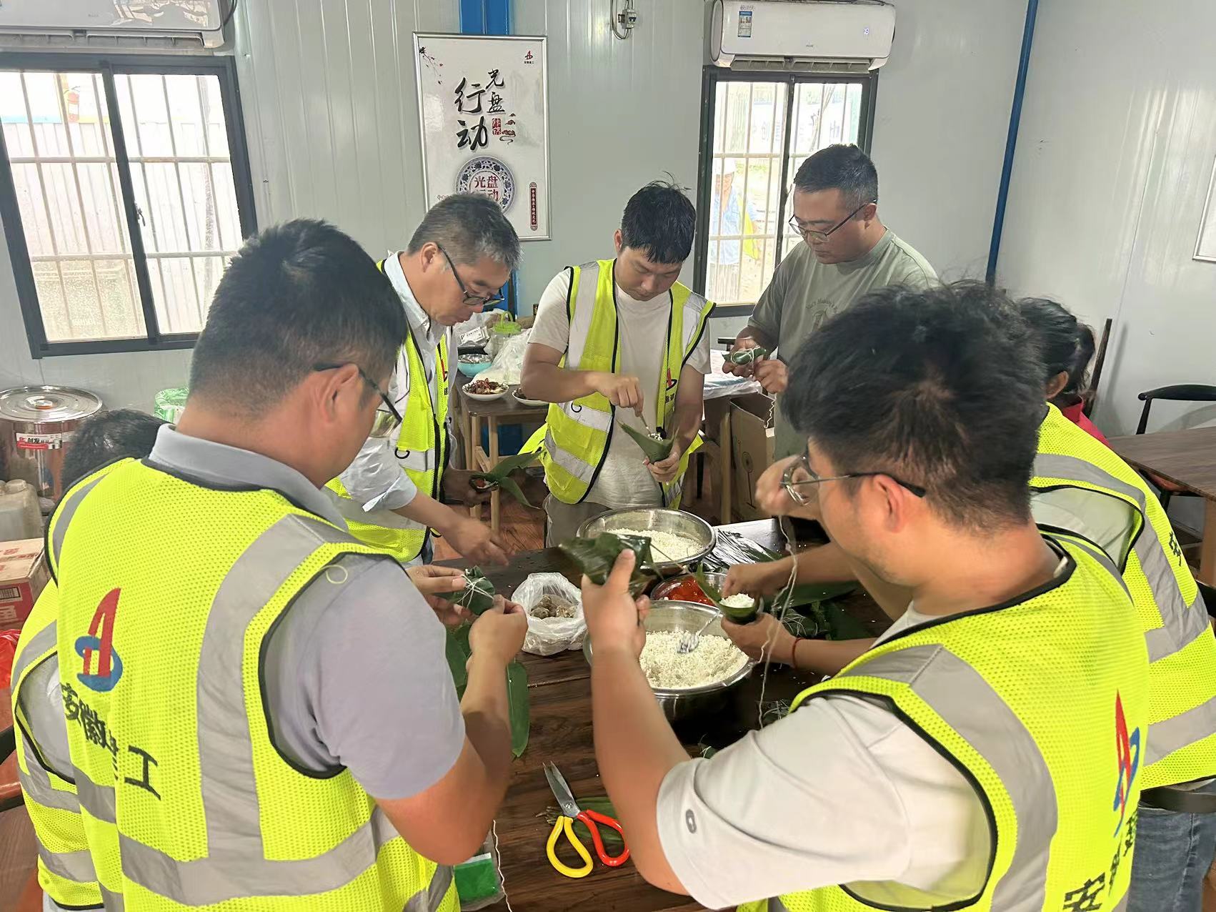 在霍邱縣行蓄洪區(qū)五標(biāo)段項(xiàng)目部,全體管理人員利用晚飯時(shí)間間隙,組織開展包粽子活動(dòng),豐富職工業(yè)余生活,增強(qiáng)項(xiàng)目凝聚力。