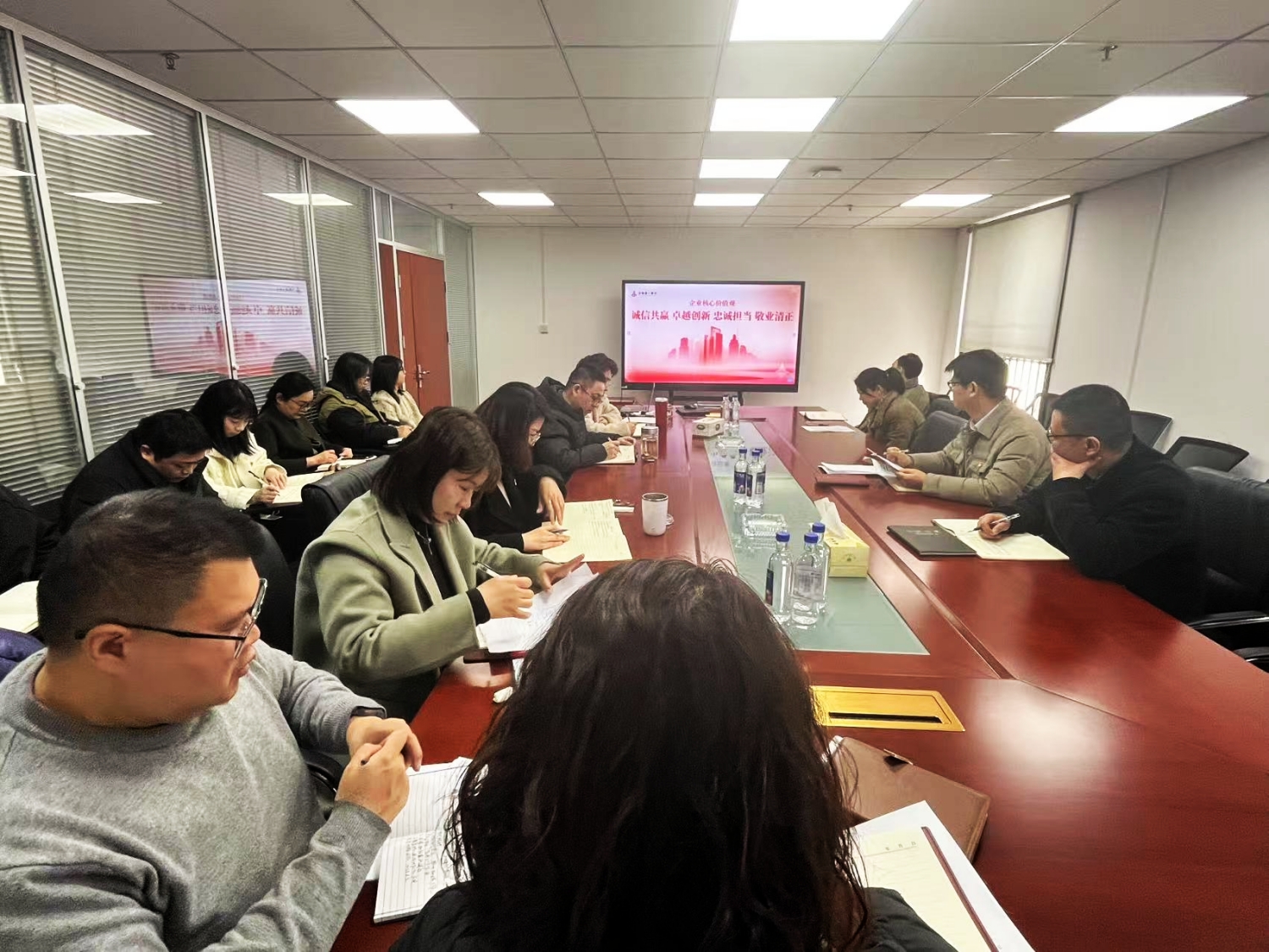 近日,門窗公司黨支部組織全體員工深入學習集團核心價值觀,深刻領會“誠信共贏、卓越創新、忠誠擔當、敬業清正”的豐富內涵和深刻意義。會議要求,全體職工要將集團核心價值觀作為日常工作的行為準則,切實將集團核心價值觀落實到崗位職責和實際工作中,真正做到內化于心,外化于行,在實踐中落地生根。