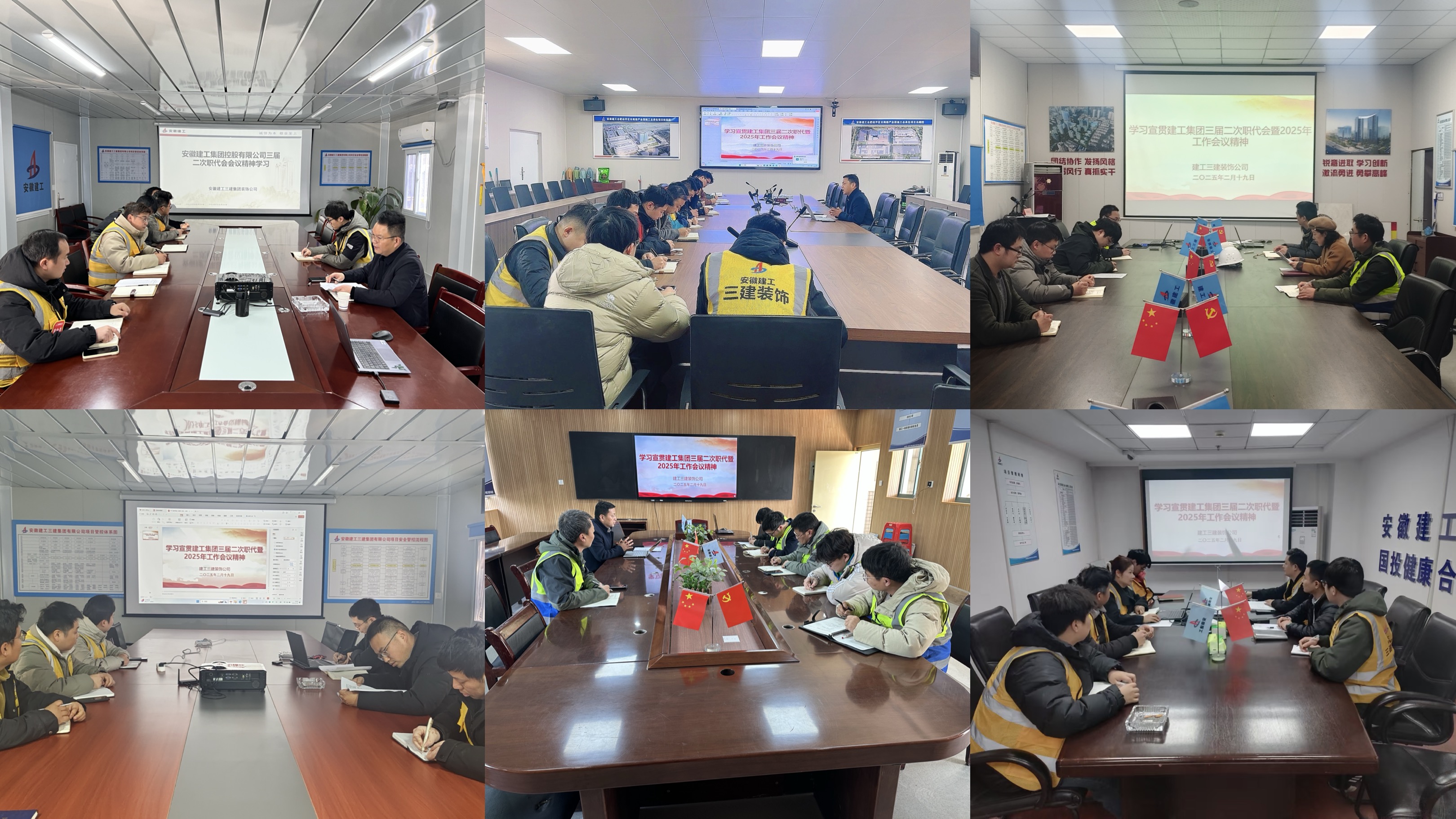 2月9日至12日,安徽建工集團控股有限公司三屆二次職工代表大會暨2025年工作會議勝利召開。會后,建工三建所屬各單位通過多種形式,傳達學習集團黨委書記、董事長楊善斌作的題為《改革創新 擔當作為 強化企業管理 加快轉型升級 奮力推進安徽建工集團高質量發展大發展》講話精神和集團黨委委員、總會計師王淑德作的《集團年度工作報告》精神,迅速掀起學習宣貫熱潮,確保會議精神傳達到每一位職工,進一步統一思想、凝心聚力,為推動集團轉型發展、高質量發展、大發展貢獻力量。