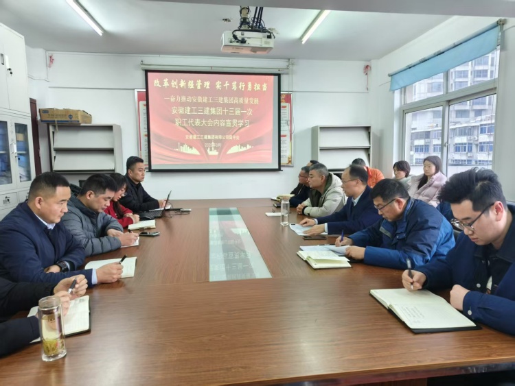 近日,安徽建工集團(tuán)控股有限公司三屆二次職工代表大會(huì)暨2025年工作會(huì)議和安徽建工三建集團(tuán)有限公司十三屆一次職代會(huì)暨2025年工作會(huì)議勝利召開。會(huì)后,建工三建所屬各單位迅速掀起學(xué)習(xí)宣貫熱潮,確保兩級職代會(huì)精神傳達(dá)到每一位職工,進(jìn)一步統(tǒng)一思想、凝心聚力,推動(dòng)公司高質(zhì)量發(fā)展,為集團(tuán)轉(zhuǎn)型發(fā)展、高質(zhì)量發(fā)展、大發(fā)展貢獻(xiàn)力量。
