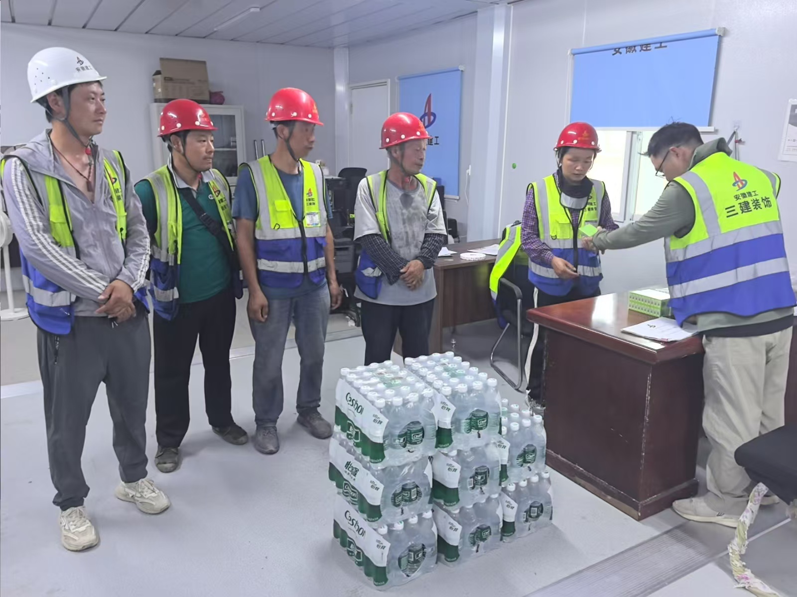 同時,在后勤保障方面,項目食堂嚴格把控食材采購與儲存,注重餐食“清爽開胃、營養均衡”,每日供應綠豆湯等降暑飲品,讓員工吃得安全健康,以良好狀態投入工作。