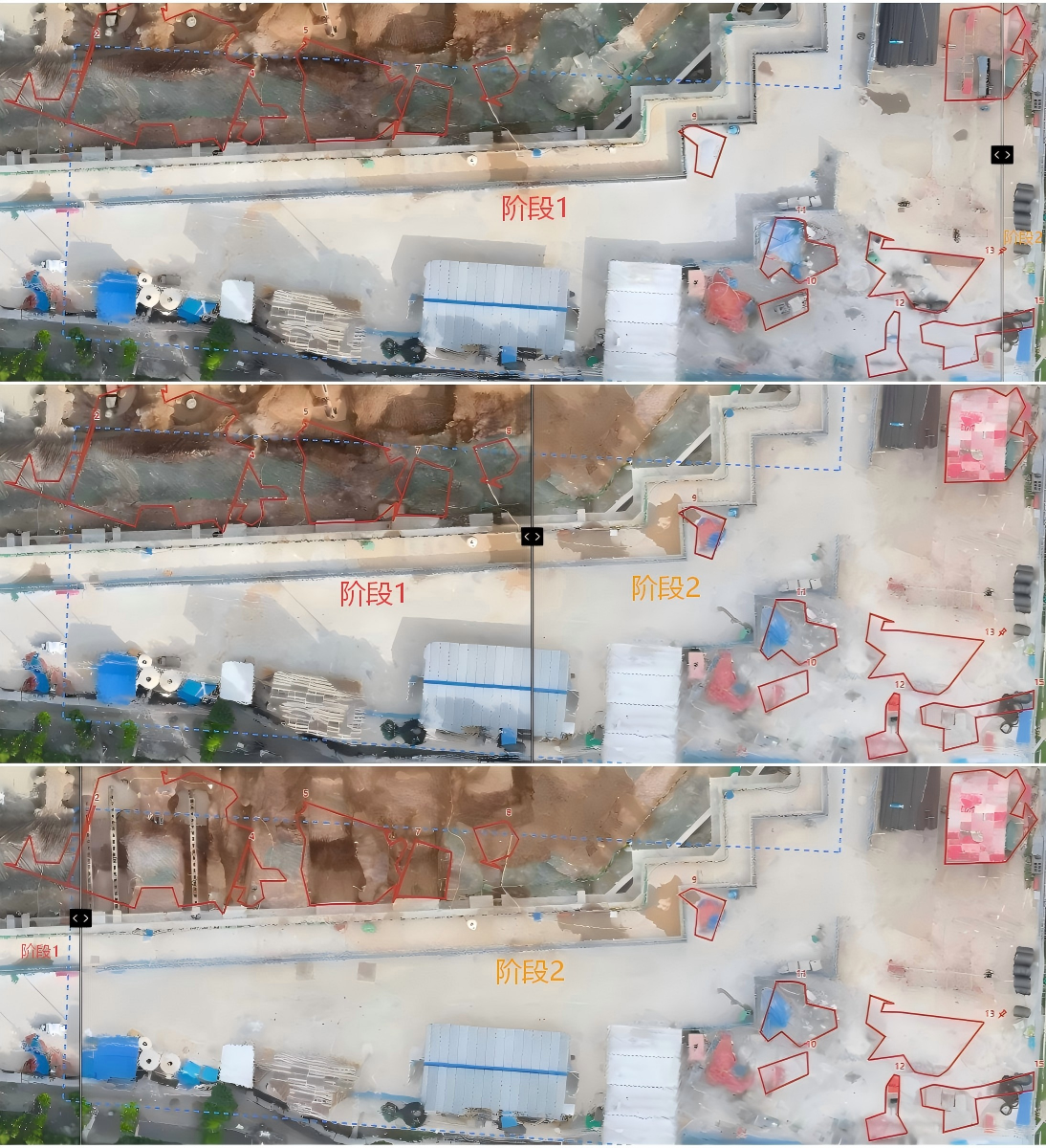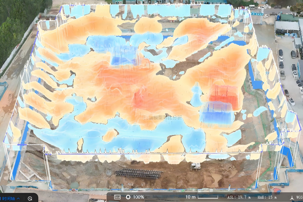 通過空間模型與時間軸結(jié)合,系統(tǒng)對多時間點二維、三維及斷面模型數(shù)據(jù)自動比對,直觀呈現(xiàn)土方開挖變化與工程進(jìn)度,為進(jìn)度計劃制定和優(yōu)化提供支撐。同時,AI圖像比對技術(shù)可自動識別不同時間點模型間的差異區(qū)域,實現(xiàn)施工區(qū)域動態(tài)變化精準(zhǔn)監(jiān)控。