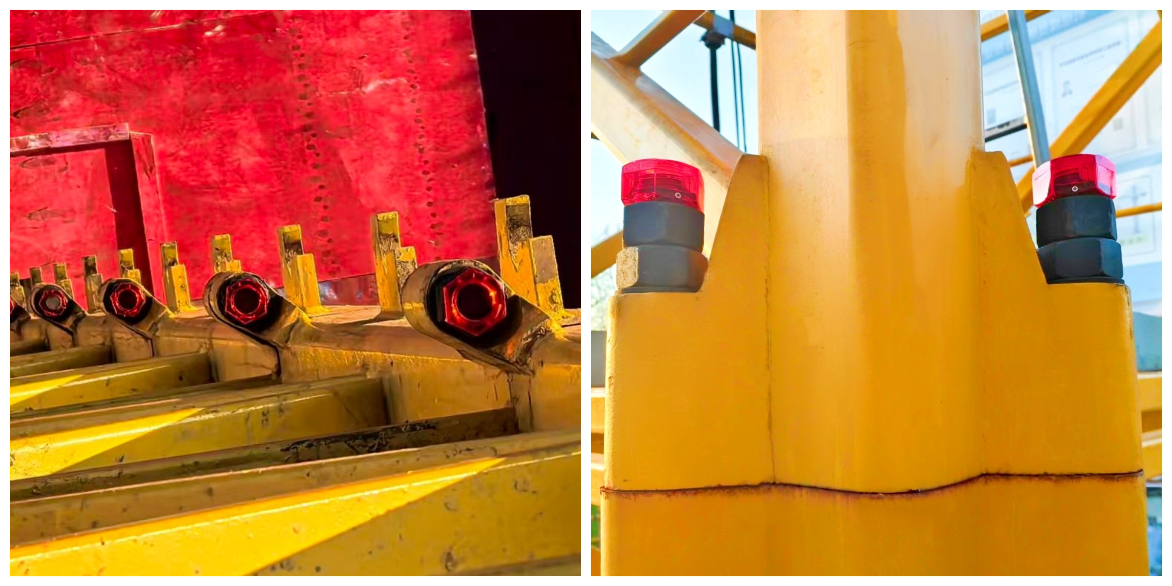 螺栓松動是塔吊、施工電梯等大型設備運行中的潛在風險,傳統人工巡檢難以實現實時預警。該項目部署的智慧螺母,內置高精度壓力傳感器與紅色聲光報警系統,可在螺栓出現松動時立即觸發警報,將隱蔽風險轉化為直觀視覺信號,助力運維人員快速處置,顯著提升風險響應效率。