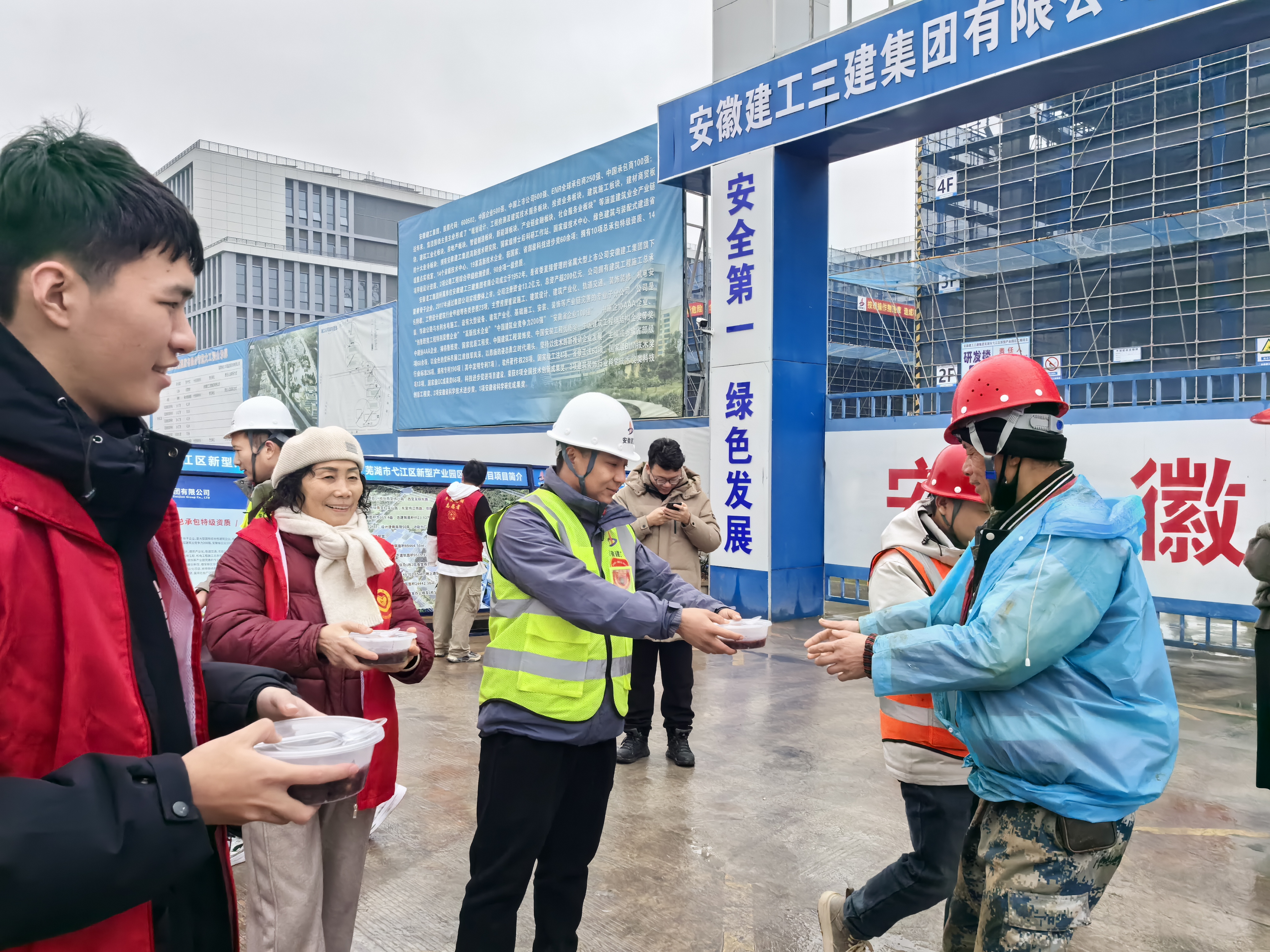 臘八節當天,蕪湖弋江區新型產業園區二期項目聯合平山社區黨委、社區工會聯合會、蕪湖市弋江區愛心公益志愿者協會,開展“濃情臘八粥、溫暖社區情”公益活動,為堅守崗位的一線建筑工人送上熱氣騰騰的臘八粥與節日祝福。