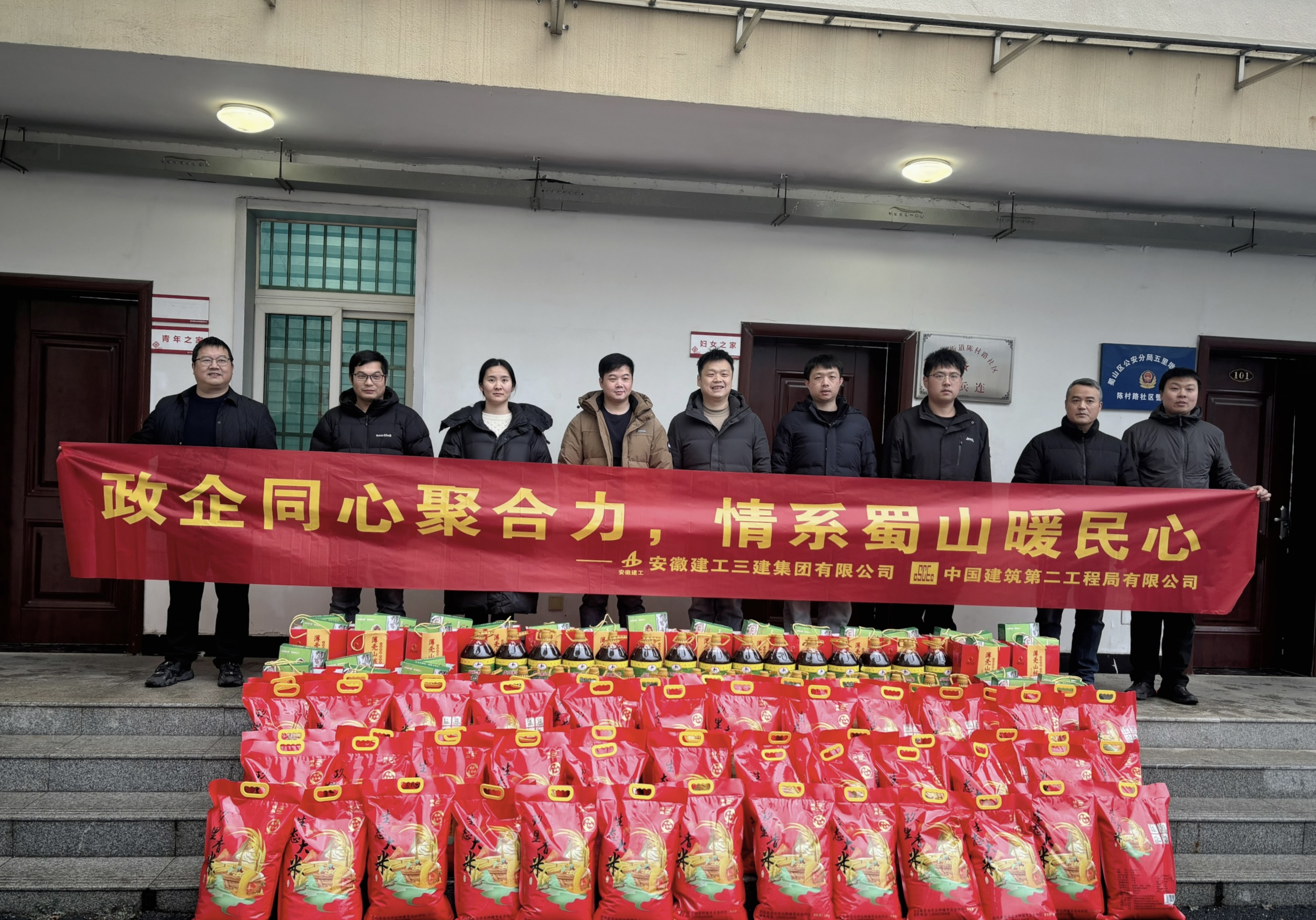近日,第二建筑公司蜀山區SS202503號地塊項目聯合肥西縣住建局、中建二局,在肥西縣周樓村黨群服務中心舉辦“守初心、惠民生、促振興”鄉村振興助農活動;隨后,項目工作人員赴蜀山區五里墩街道陳村路社區,開展新春困難群眾慰問活動,為轄區獨居老人、低保家庭等困難群體送上米油等生活物資,捎去真摯的新春祝福,以暖心行動踐行國有企業的社會責任擔當。