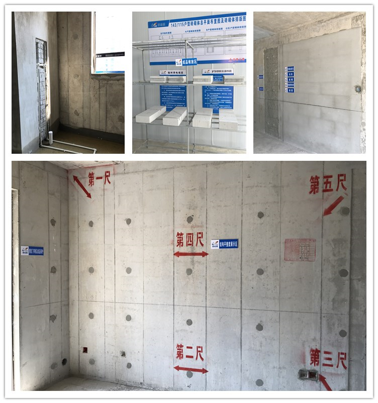 蚌埠公司項目團隊還結合鋁膜技術采用高度穿插施工組織方案,有效保障質量和工期。主要做法是一方面采取對二次結構、門窗固定片企口、欄桿固定杯口、窗臺高度等優化設計,使之隨主體結構施工,從而縮短工期提高質量;另一方面結合碧桂園全砼外墻施工的要求,采用高度穿插施工方式——結構施工至6層安裝人貨電梯,結構施工至7層開始砌筑,結構施工至10層開始抹灰,結構施工至15層開始精裝修,外墻保溫隨結構同步施工,欄桿、扶手、門窗同步穿插。