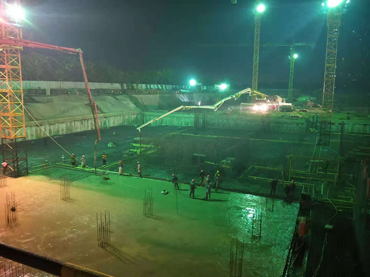 為全面保障項目搶工順利實施,項目部采取優選班組、優化施工組織、優化工作面等多方面措施。為了保障夜間施工順利進行,項目部實施夜間值班制度并多次協調環保部門,在保障不擾民的情況下日夜施工。就這樣,項目部白天安排扎鋼筋,支模版,晚上澆筑砼,24小時交叉作業。