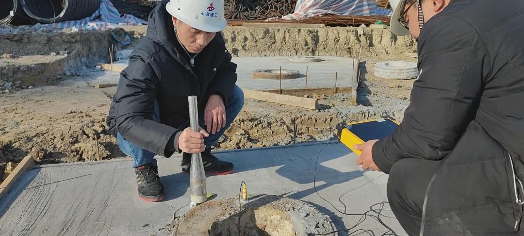 基礎(chǔ)公司郭磊在項目現(xiàn)場配合做樁基檢測。