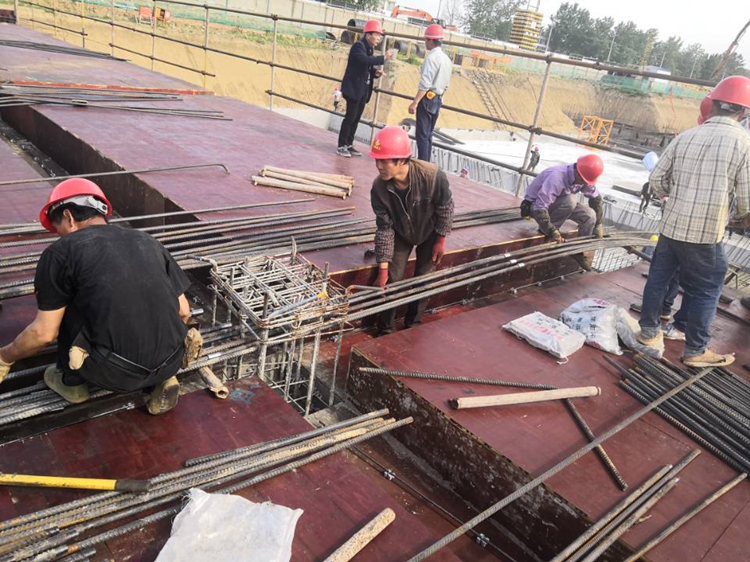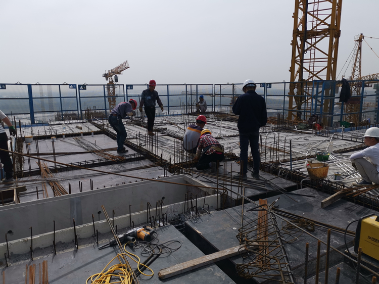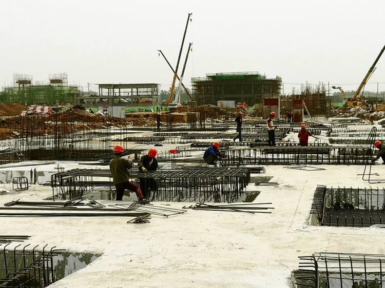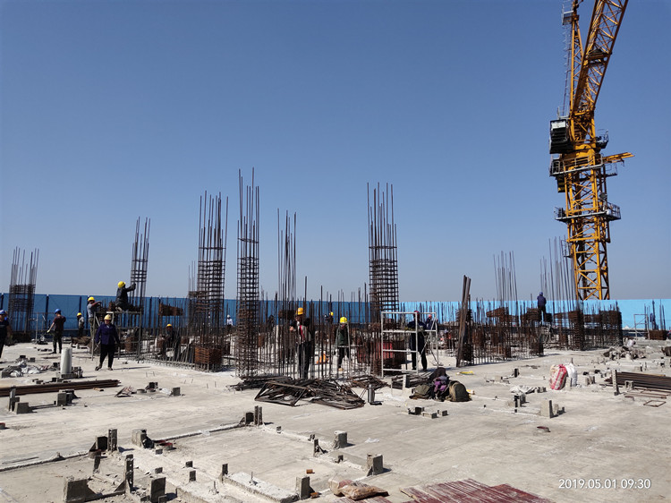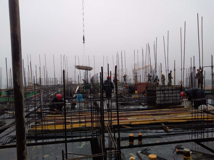 5月2日,十一公司天長恒大I標項目班組綁扎基礎承臺鋼筋。