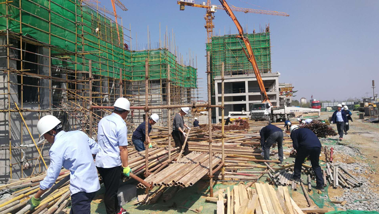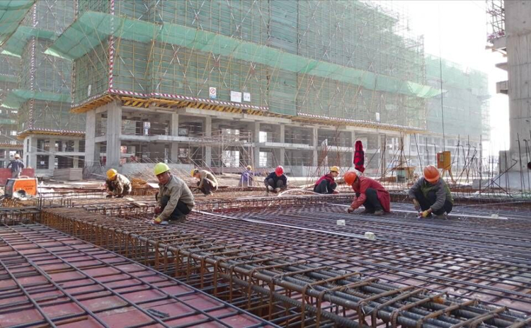 八公司臨泉銀杏苑項目:工人師傅軋鋼機、支模板,大家各司其職、相互協作。